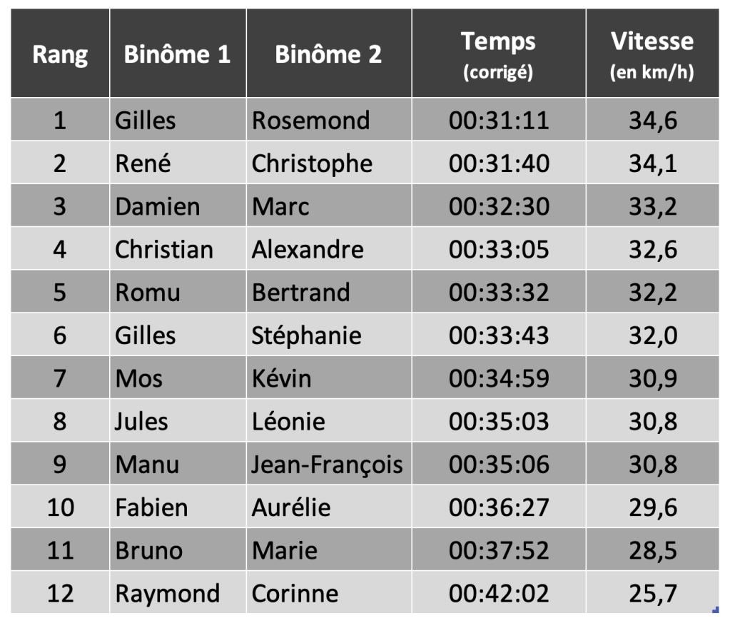 24 binĂ´mes se sont affrontĂ©s en contre-la-montre sur un parcours de 18km, l’occasion d’allier compĂ©titivitĂ© et convivialitĂ©.